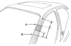 The distance from the A pillar to B pillar at R angle above the bottom dead center of front door frame. |