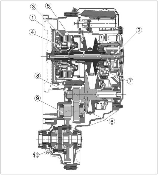1. Hex flange bolt (10) 2. Main reduction gear |