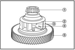 1. Half shaft gear gasket (2) 2. Half shaft gear (2) 3. Planetray gear gasket (2) 4. Planetary gear (2) |