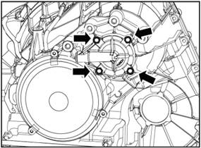 1. Air discharging valve connector 2. Hex flange bolt (2) 3. Transmission assembly hex flange bolt (5) 4. Hydraulic separating bearing