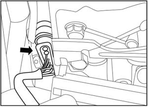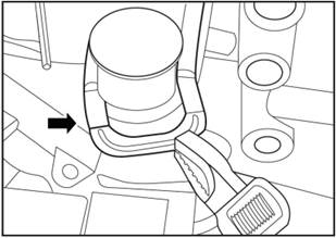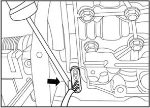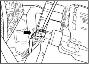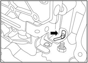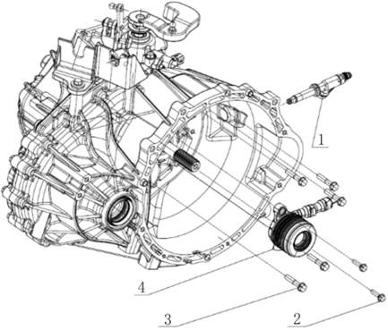 As shown in the figure below, first remove the clip on the separating bearing, then pull out the air discharging valve connector, then remove the hydraulic separating bearing bolt (2 in total), then remove the clutch hydraulic separating bearing, and finally remove the transmission assembly bolts in right transmission body (5 in total);