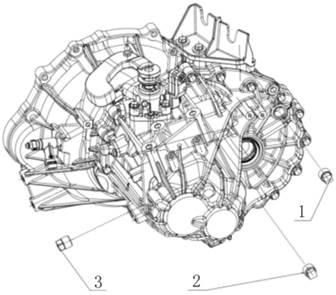 As shown in the figure below, loosen and remove the oil filling screw plug, the oil level screw plug and the oil drain bolt to release the transmission oil;