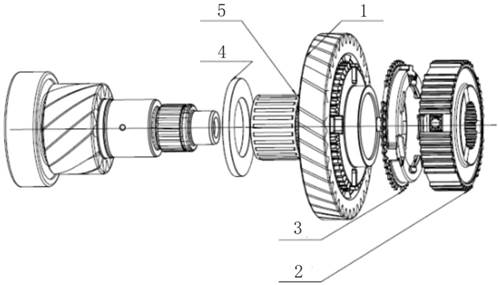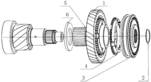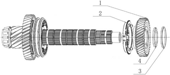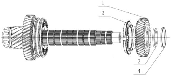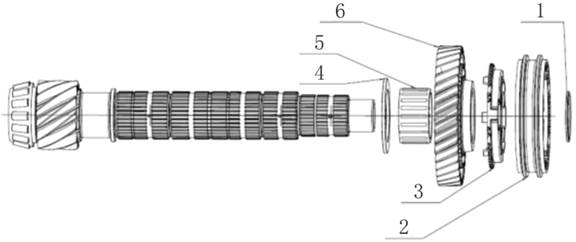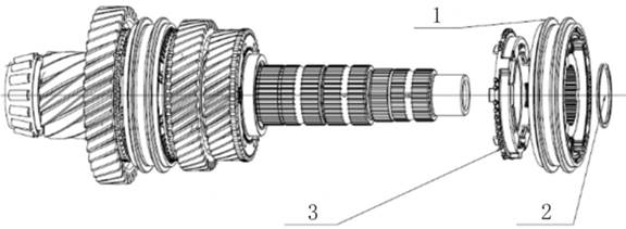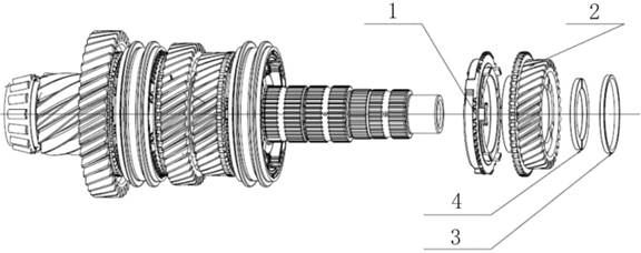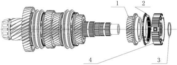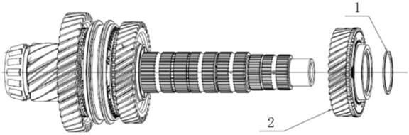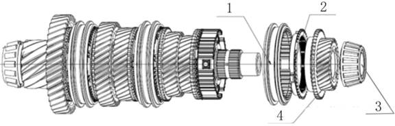 1. Reverse gear idling gear 2. High speed synchronizer clamping ring 3. R gear synchronizer assembly 4. Double cone synchronizer gear ring assembly 5. 1st gear needle bearing