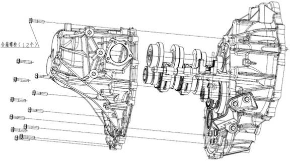 As shown in the figure below, first remove the transmission assembly bolts (12 in total) on the left transmission body, and then remove the left transmission body with the transmission body separator.