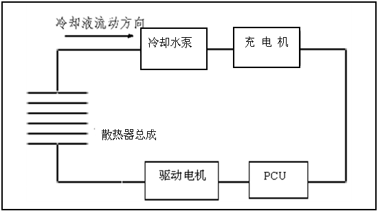 Driving motor Cooling fluid direction Cooling pump Radiator assembly Charger