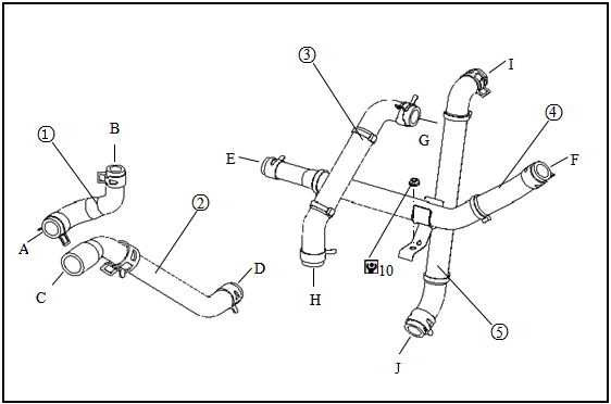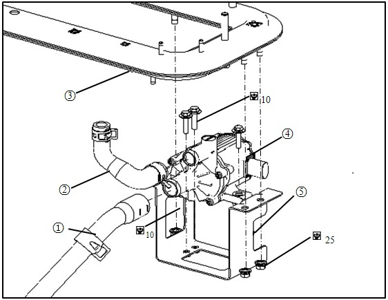 ● When installing radiator outlet pipe and charger inlet pipe, please make cooling pump steady with hand.