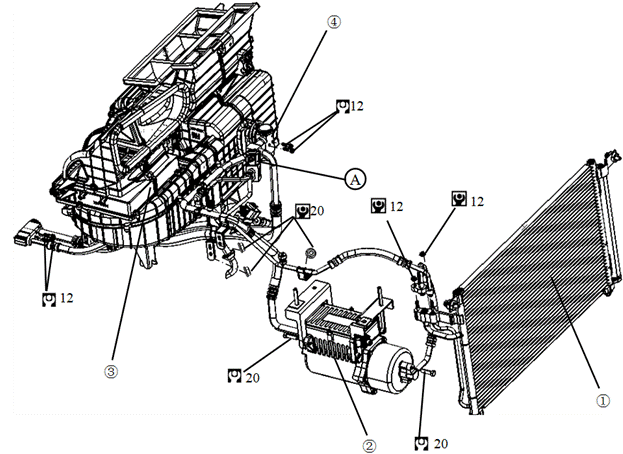The coolant R-12 and R-134a should not be mixed used, otherwise the electrical compressor may operate abnormally. In order to make sure coolant R-134a being pure and recyclable, use a filling device to refill or reclaim the coolant according to the process specified on the coolant label.