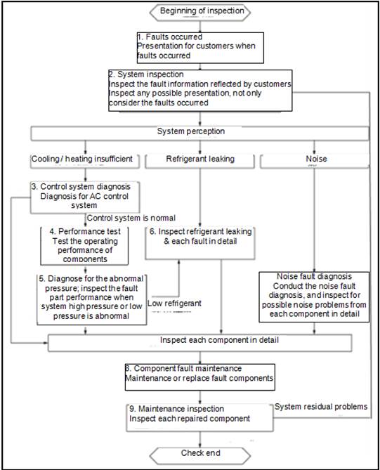 Check whether there is leakage in air conditioning system. Detect leaking point if needed. |