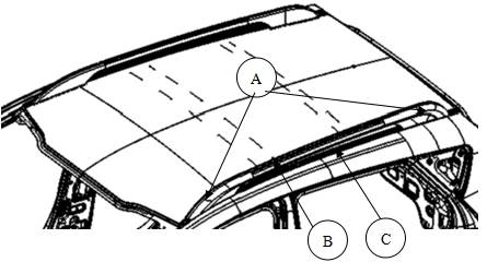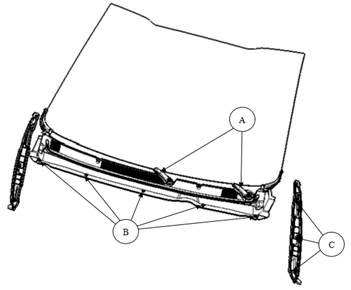 4 Remove fixing buckles(C) of all fenders and trim panels.