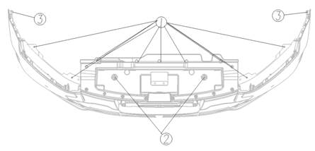2 Remove the rear bumper fixing bracket screws(12442-0520F71) and buckles(2804012U2210) illustrated in diagram 1,three left and right side;remove the screws(12442-0520F71) fixing bumper and side body illustrated in diagram 2,one left and right side;remove the three buckles(5522101U2152) fixing the lower part of bumper and rear anti-collision beam illustrated in diagram 3.