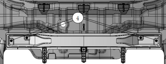 1 Before removing the rear anti-collision beam,remove the rear bumper,then remove the 4 fixing nuts (13395-0800F71) of rear anti-collision beam illustrated in diagram 4.