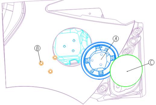 3.1 Pull out from the gap between C place of plastic filler cap and pedestal A of plastic filler cap with tools such as finger or slotted opener, take off with power slowly;
