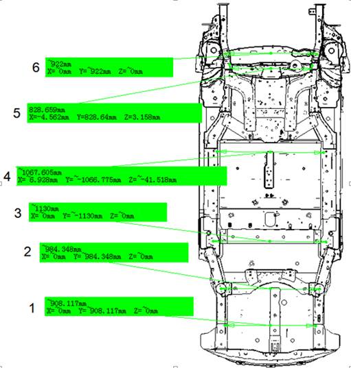 In the body maintenance process, in order to guarantee the running performance of the car and the better service for you, the repair personnel should check the size of body-in-white accordance to the following size.