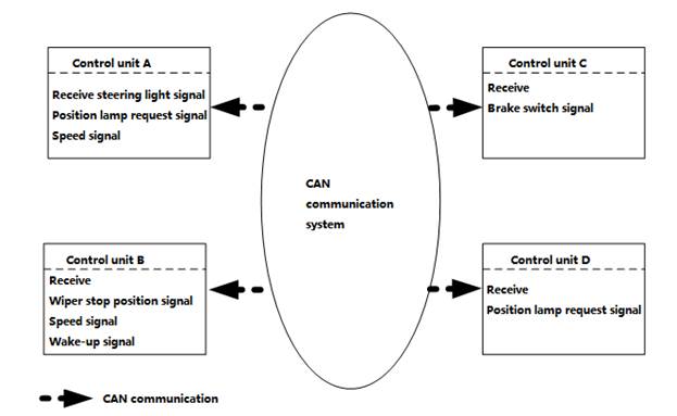 In CAN communication system, many controllers send and receive signals mutually. When CAN communication line has malfunction, the connecting controller cannot send or receive signals. In such circumstance, the controller will have malfunction or enters failure safety mode.