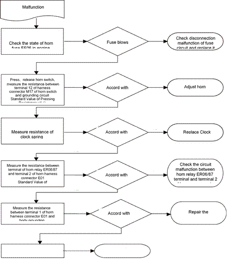 3. If the horn does not work, before replacing the horn, check and repair the bad contact or disconnection malfunction of power supply or switch ground circuit.