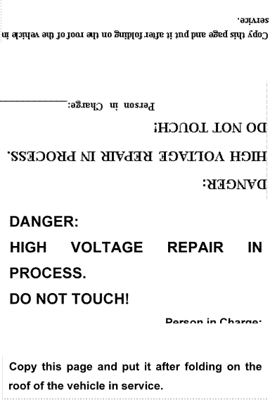 workers, indicate “High voltage work in process. Do not touch!” on vehicles