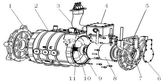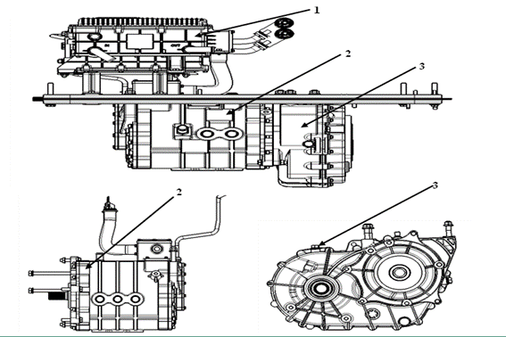 1. Power train joist 2. Three-phase line 3. Rotary transformer wire 4 Drive motor