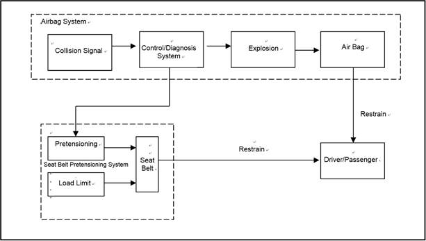 When the collision accident happens to the vehicle, the collision between the vehicle and the obstacles called primary collision, the result of the primary collision is that the vehicle speed decreases rapidly; the collision between the occupants and the vehicle interior structure called secondary collision. Before the secondary collision happens between the occupants and the vehicle interior structure, insert a gas-filled air bag between the occupants and the vehicle interior structure quickly, the air bag will absorb the kinetic energy from the occupants through the air permeability itself and the exhaust throttle function of the deflation hole, which decreases the violent collision and isolates occupants and interior structure, finally reaches the aim to protect the occupants.