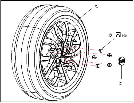 1 Remove tire nut. ● Tightening torque:90~110N·m 2 Remove wheel assembly