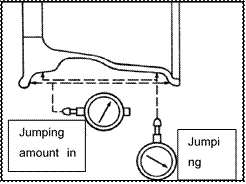 ● Check whether there is cracks or other damage in the wheel. If yes, please replace. ● Check whether the wheel has deformation. If yes, please measure the jumping amount. Remove the tire and install wheel in the wheel balance machine. As shown in figure set the dial gauge, measuring wheel hop. If more than standard, please replace. |