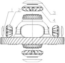 1. Half shaft gear gasket (2) 2. Half shaft gear (2) 3. Planetray gear gasket (2) 4. Planetary gear (2) |